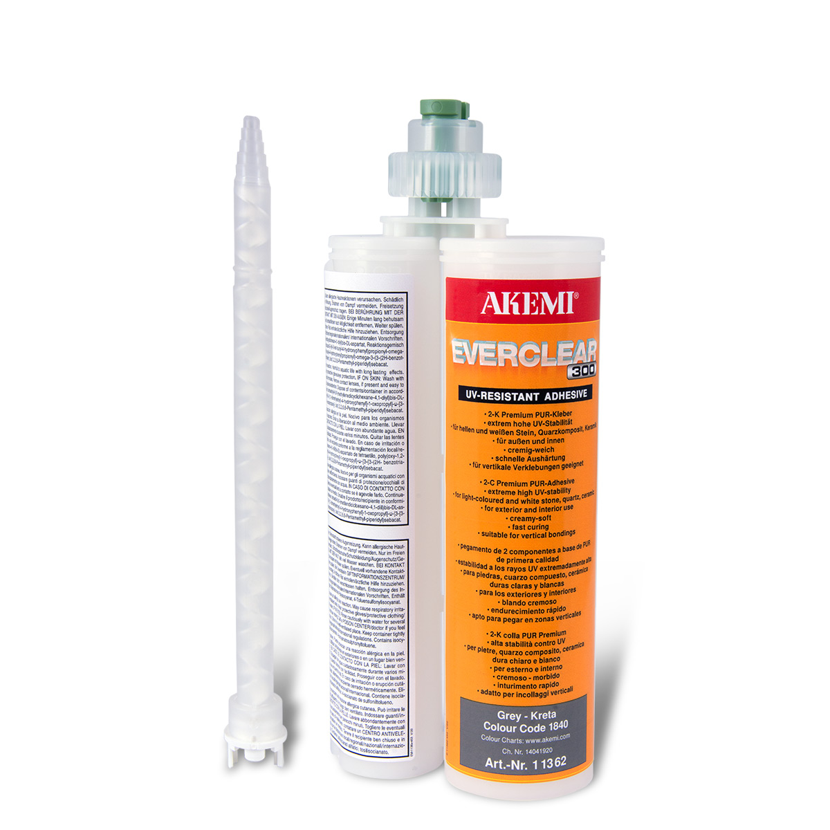 Lepidlo 2k-pur v kartuších, prakticky bez zežloutnutí, bez VOC, krémově měkká konzistence umožňuje použití u vertikálních lepení viditelných spár, nejrůznější barvy, možná široká lepená spára, směs 2:1.
